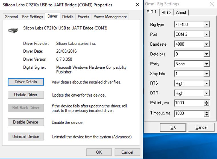 Turns out – the issue is in the driver for the CP210x dongle! If you use the latest version (at the time of writing – v6.7.5) then you’ll experience these mishaps. (I’m betting other rigs using this chipset will be affected too!).