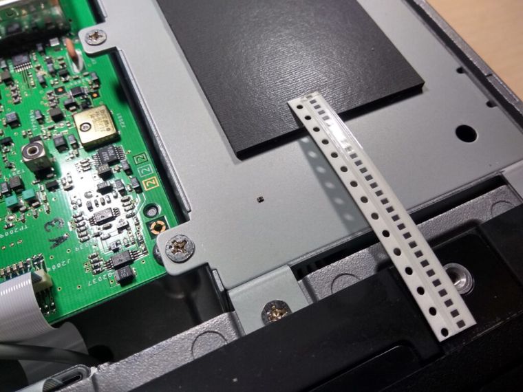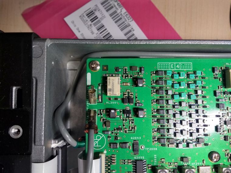 Anyway, I set my multimeter to the diode setting and quickly realized that one of them was shorted. Really, who tries to use LED’s as protection diodes? Really not up to the task. Here’s one that was still working. The picture gives a good indication where you can find them on the PCB (underside of the transceiver).