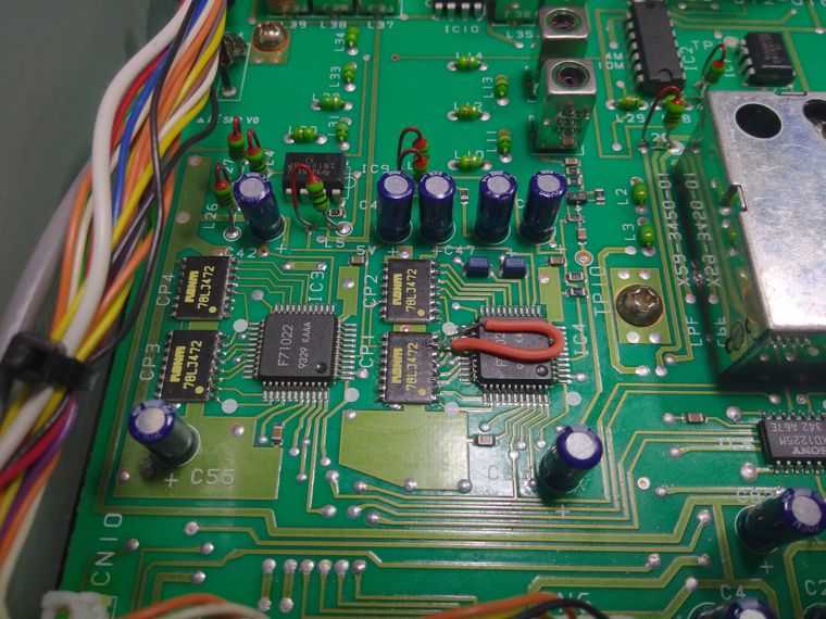 Alas, in this case, upon opening the unit, it was immediately clear that someone had tried to patch this up; and a trace was missing to the CPU! I removed the resistor network first, so I could clean up the area. It’s quite noticeable were the trace is missing. It’s the second trace; top right; of CP1.
